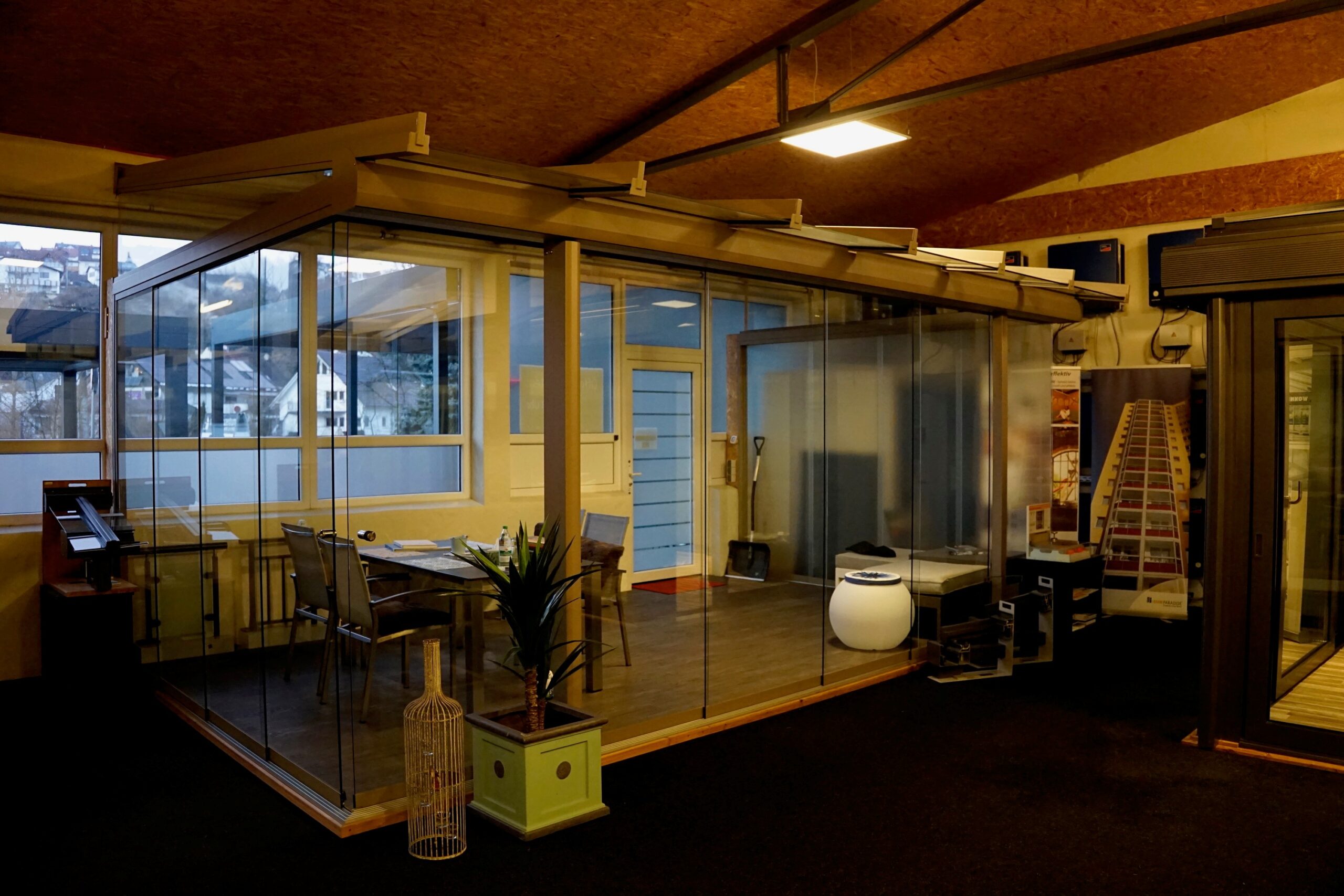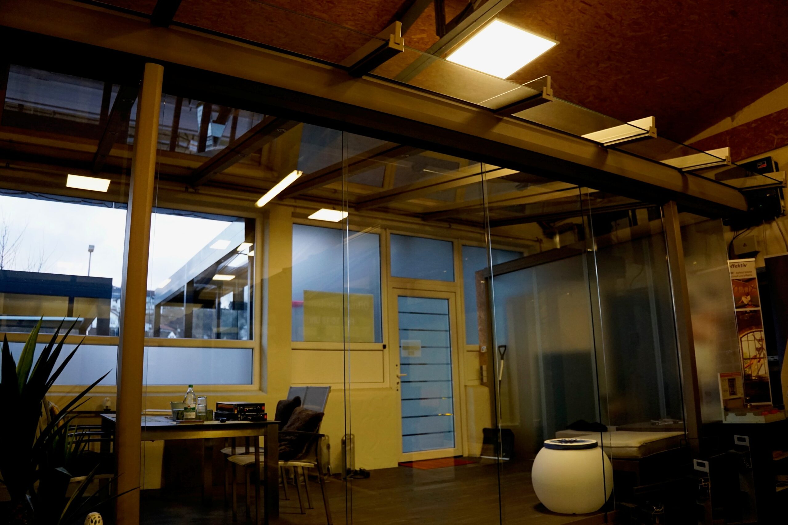 Durch die Kombination aus robustem VSG-Glasdach und integrierter Beleuchtung entsteht eine hochwertige, ganzjährig nutzbare Überdachungslösung.