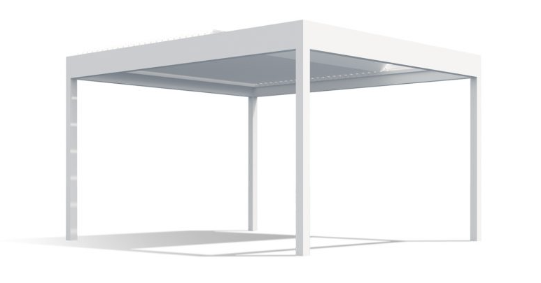 Oskura Waterproof ist eine Pergola mit verstellbaren Aluminium-Lamellen, die: