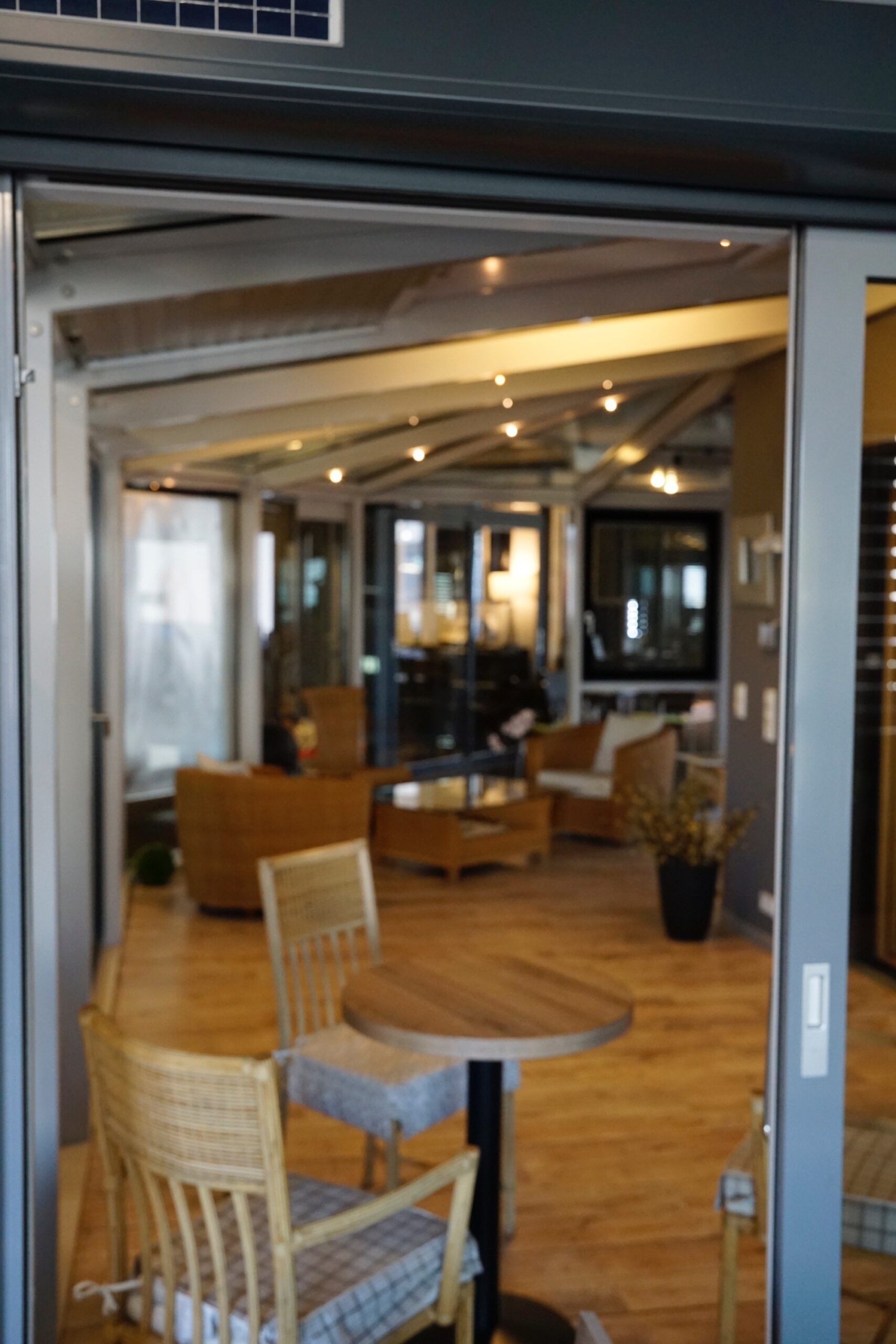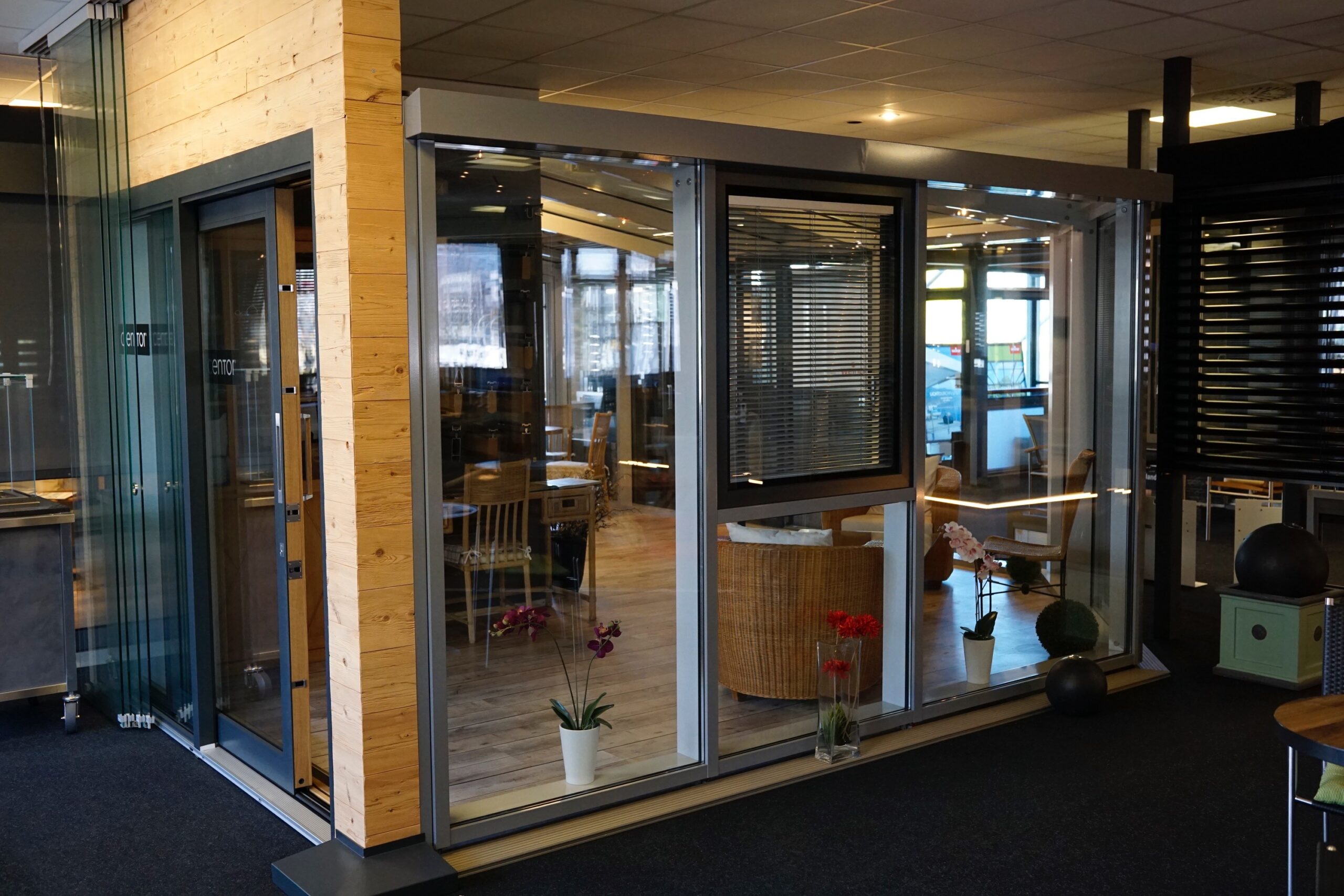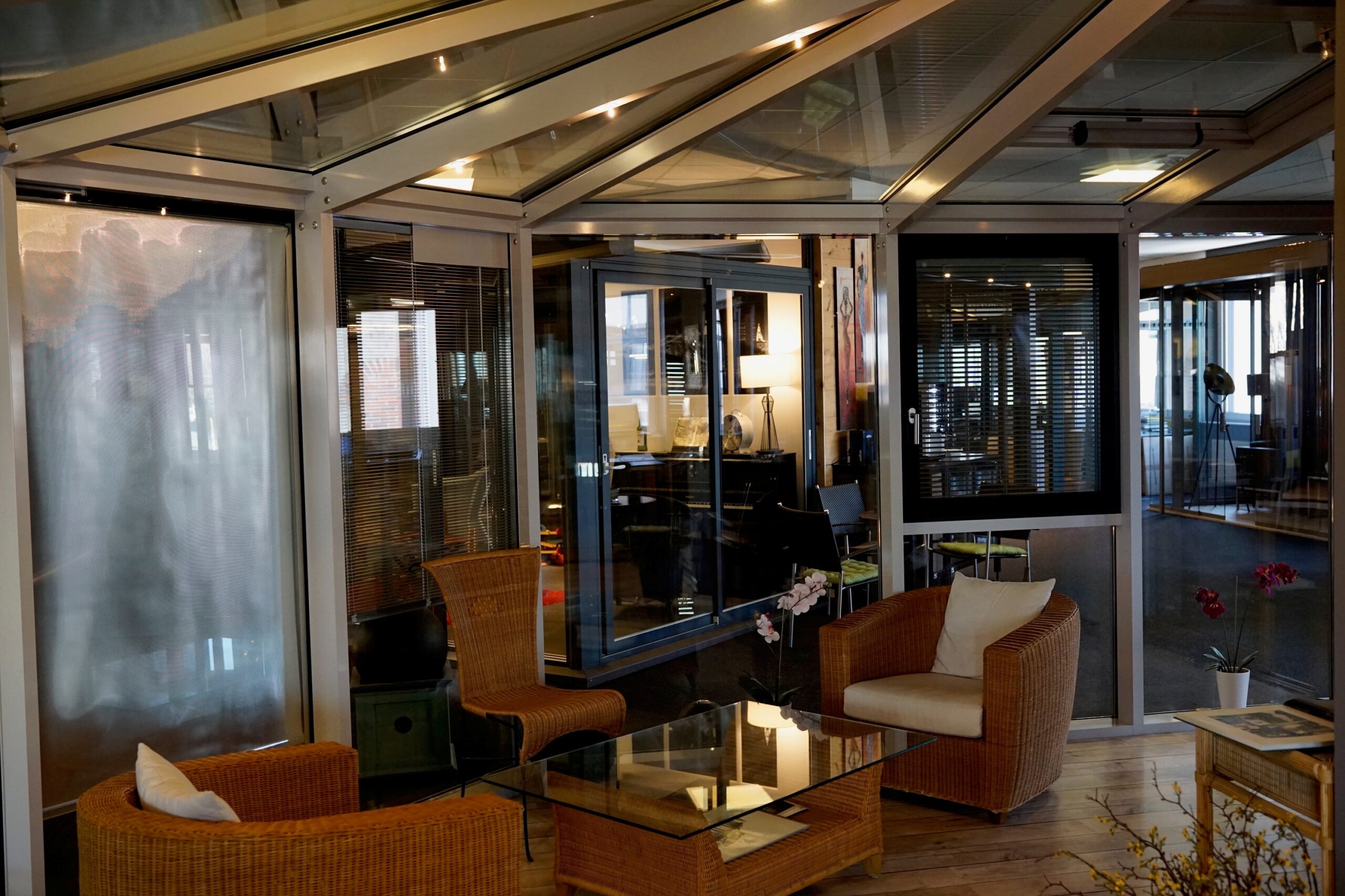 Solide Konstruktion mit Zweifachverglasung und großzügigen Glasflächen.